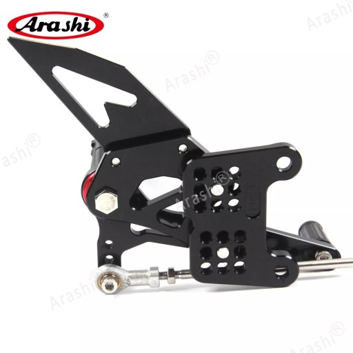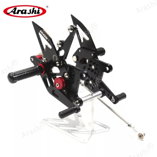 Arashi (Version 2.0) to regulowane sety zaprojektowane dla motocykli Triumph Speed Triple 1050 (roczniki 2005–2010) oraz Triumph Daytona T595, T509 i 955i (roczniki 1997–2005). Zestaw obejmuje wytrzymałe, precyzyjnie obrabiane podnóżki w kolorze czarnym, które poprawiają ergonomię jazdy, oferują wielostopniową regulację oraz zwiększają kontrolę nad motocyklem.