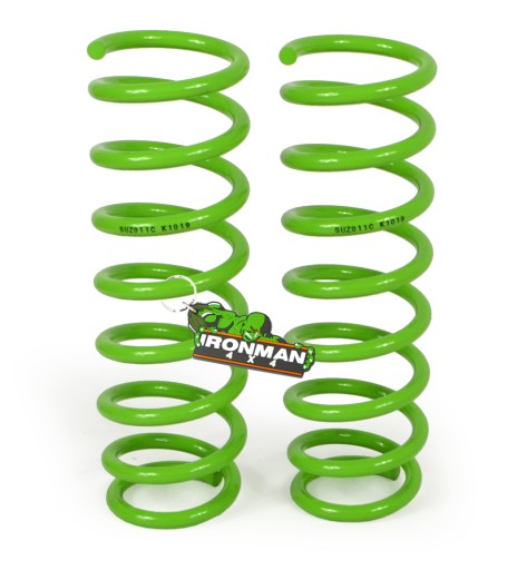 Sprężyny IRONMAN 4X4 są wykonane z najczystszej stali manganowo-krzemowej, to gwarancja utrzymania optymalnego prześwitu i doskonałych właściwości jezdnych nawet pod dużym obciążeniem. Dzięki zaawansowanej technologii zwijania na zimno oraz procesowi formowania materiału przed zwinięciem, każda sprężyna cechuje się idealną precyzją wykonania i brakiem wad strukturalnych na całej długości. Maksymalną żywotność oraz odporność na osiadanie zapewnia proces trzykrotnego ściskania i śrutowania powierzchni, co drastycznie redukuje naprężenia materiału. Całość zabezpieczono trwałą, elektrostatyczną powłoką proszkową w charakterystycznym kolorze marki, chroniącą stal przed korozją w najtrudniejszych warunkach terenowych.