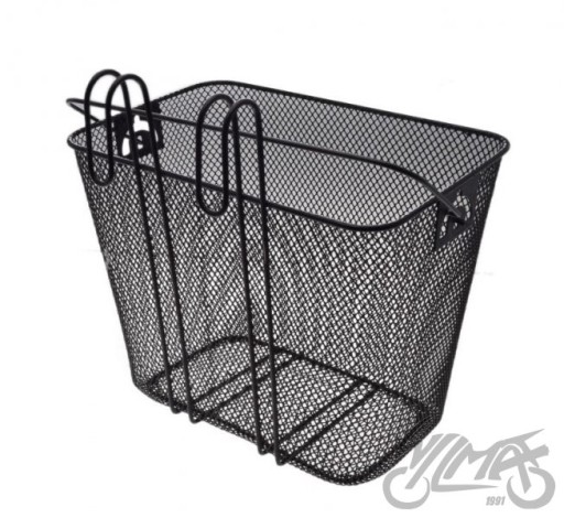 Kosz z siatki zawieszany, stalowy powlekany, kolor czarny, Kosz z siatki tył, mocowany dwoma zaczepami do bagażnika, kolor czarny, rączka z uchwytem, wymiary: 32 x 25 x 21 cm, obciążenie do 5 kg