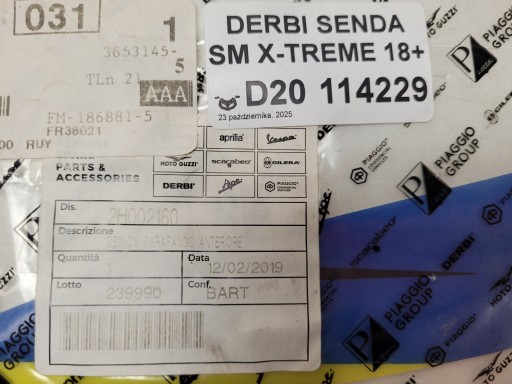 DERBI SENDA SM X-TREME 18r NAKLEJKA OKLEINA BŁOTNIK PRZÓD 2H002160