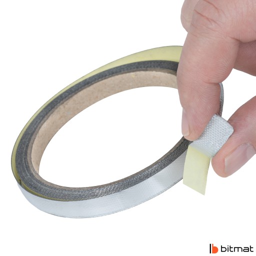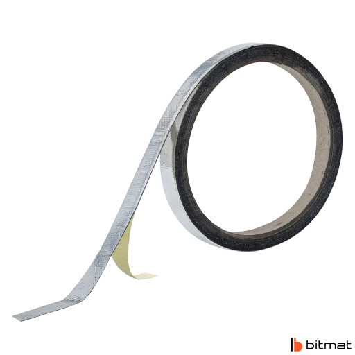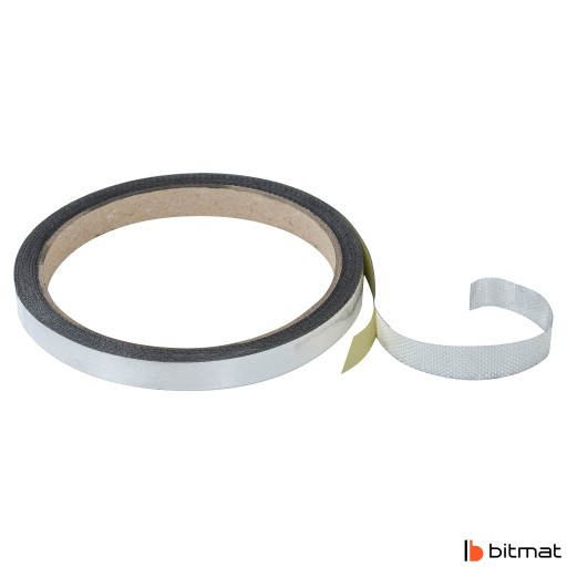Cena dotyczy 1-sztuki taśmy termicznej samoprzylepnej z włókna szklanego z aluminium firmy Bitmat o długości 5 m, szerokości 10 mm.