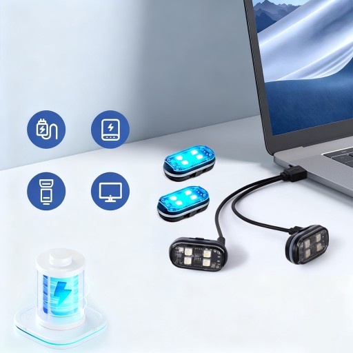 🌈 Każda lampa stroboskopowa wyposażona jest w 4 diody LED o wysokiej jasności oraz akumulator, który można łatwo ładować za pomocą dołączonego kabla USB typu C. Można je w pełni naładować w 60 minut, a ich żywotność baterii wynosi do 60 godzin w trybie migania⚡, przy najwyższym poborze mocy, np. 2 godziny na czerwonym świetle i 4 godziny na białym świetle.