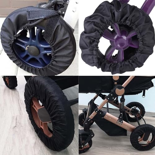 4 szt. pokrowców na koła dziecięce, pokrowców na koła dziecięce, ochraniaczy na koła wózków dziecięcych, ochraniaczy na wózki inwalidzkie, wodoodpornych i odpornych na zabrudzenia pokrowców na koła, akcesoriów pyłoszczelnych (czarne)