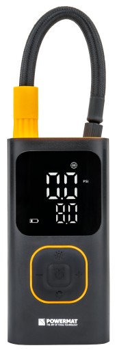 Kompresor samochodowy akumulatorowy Powermat to poręczne urządzenie z akumulatorem 4000 mAh i ciśnieniem do 10 bar, oferujące automatyczne wyłączanie, pięć trybów pracy, funkcję powerbanku, latarkę LED oraz zestaw końcówek – idealne do szybkiego pompowania opon, rowerów, piłek i materacy w każdej sytuacji.