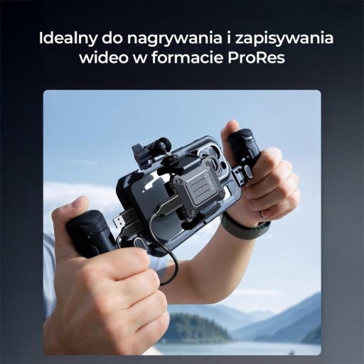 Wbudowany port USB‑C 3.2 Gen 2 obsługuje transfer do 10 Gb/s - dokładnie tyle, ile maksymalnie oferuje iPhone 15 Pro. To oznacza, że możesz rejestrować materiał w ProRes, zrzucać dane błyskawicznie i pracować w locie, bez czekania. Tak samo skutecznie podłączysz się do komputera z USB‑A - adapter masz w zestawie.