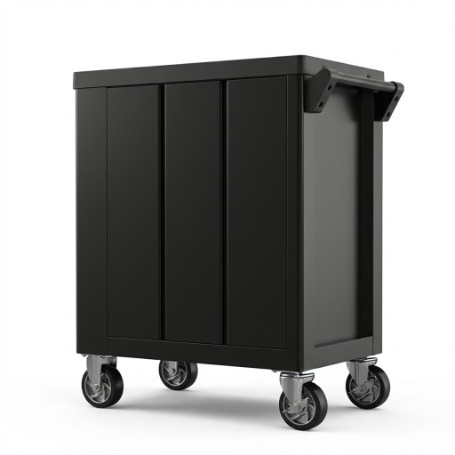 Stabilną pracę i mobilność zapewniają kółka PP (w tym dwa skrętne z hamulcem), a zamek centralny pozwala zabezpieczyć całą zawartość jednym ruchem. Wózek posiada również boczną półkę, zamykaną przednią przestrzeń oraz uchwyt ułatwiający manewrowanie. Całość pokryto malowaniem proszkowym 60–80 μm, które zwiększa odporność na korozję i uszkodzenia mechaniczne.