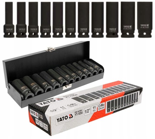 УДАРНЫЕ ГОЛОВКИ ТОРЦЕВЫЕ КЛЮЧИ ДЛИННЫЕ 1/2 ДЮЙМА 11 шт. КОВАНЫЙ КОРПУС YT 1054