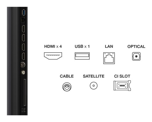 Telewizor dysponuje szerokim zakresem portów, w tym 4 x HDMI 2.1, USB 3.0, Ethernet oraz optyczne wyjście audio. Moduł Wi-Fi 5 GHz oraz Bluetooth A2DP umożliwiają bezprzewodowe połączenia z innymi urządzeniami. Wsparcie dla DLNA oraz T-cast pozwala na łatwe udostępnianie treści. Dzięki funkcji HDMI CEC jednym pilotem obsłużysz kilka urządzeń jednocześnie.
