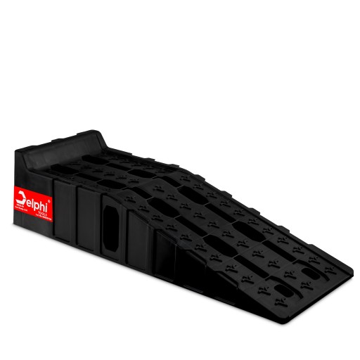 Najazdy Delphi Tools zostały zaprojektowane z odpowiednio wyprofilowanym, łagodnym kątem podjazdu, który zapewnia płynny i bezpieczny wjazd na rampę - bez ryzyka zahaczenia zderzakiem, progami lub osłoną silnika.