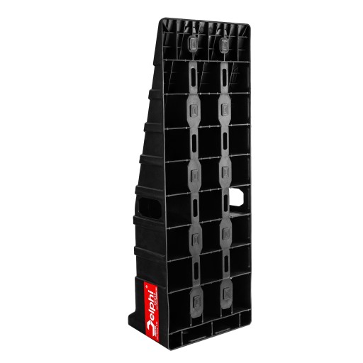 - Wysoka nośność - gęsta sieć wewnętrznych komór i żeber rozkłada nacisk równomiernie na całą powierzchnię, dzięki czemu najazd wytrzymuje duże obciążenia bez odkształceń.
