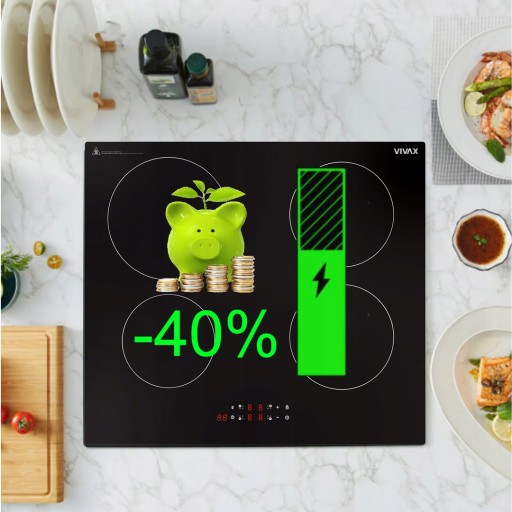 Dzięki najnowszej technologii indukcyjnej płyta indukcyjna do zabudowy VIVAX BH-04MIN podgrzewa zawartość naczynia, a nie talerz czy patelnię. W ten sposób energia kierowana jest bezpośrednio na gotowanie, bez strat ciepła i poświęcania czasu potrzebnego na podgrzanie garnka.
