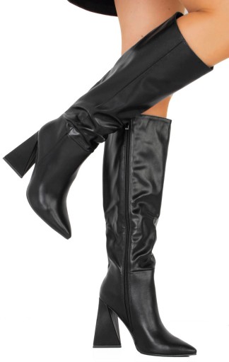 KOZAKI NA SŁUPKU W SZPIC CZARNE SKÓRZANE 38