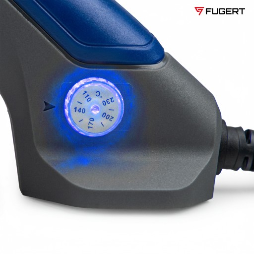 ☑️ Regulacja temperatury - regulacja pokrętłem w zakresie 110-230°C umożliwia dopasowanie temperatury do używanych materiałów.