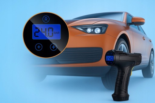 - Automatyczne wyłączanie po osiągnięciu zadanego ciśnienia – bez ryzyka przeładowania opon.