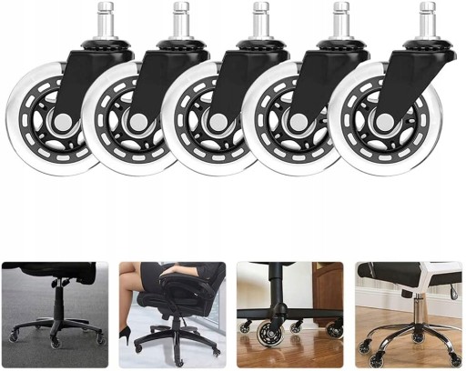 🛞 KAUCZUKOWE KÓŁKA DO FOTELA BIUROWEGO I GAMINGOWEGO 5 SZTUK