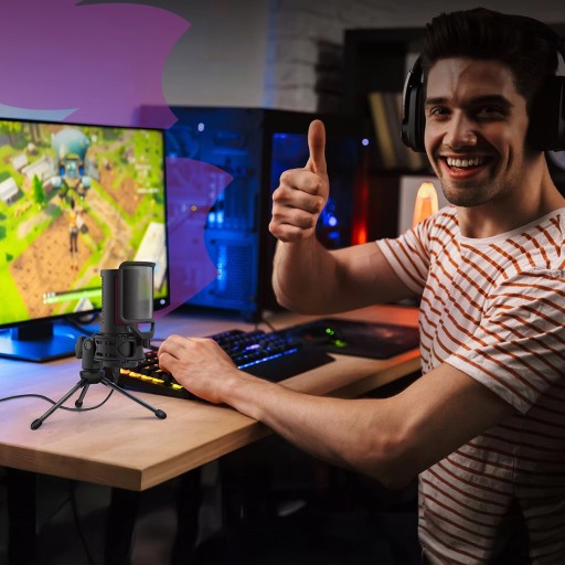 ☑️ Technologia USB Plug & Play - Wbudowana karta dźwiękowa sprawia, że mikrofon działa natychmiast po podłączeniu do PC, Maca, PS4 lub PS5, bez konieczności instalowania sterowników.