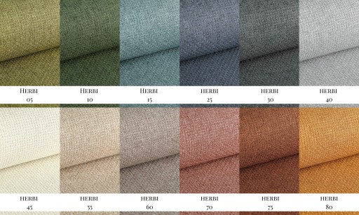 Jest to plecionka o wysokiej odporności na tarcie oraz koloru na światło. Tkaninę tapicerską Herbi należy czyścić delikatnymi środkami. Oprócz tego, charakteryzuje się wysoką wytrzymałością, dzięki czemu idealnie nadaje się do mebli, które są intensywnie użytkowane, na przykład narożniki i fotele.
