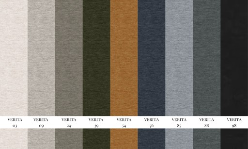 Elegancka tkanina tapicerska Verita wyróżnia się drobnym, równomiernym splotem i subtelną strukturą, która nadaje meblom wyjątkowo klasyczny i szlachetny wygląd. Miękka w dotyku powierzchnia zapewnia wysoki komfort użytkowania.