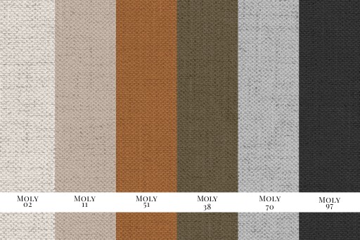 Tkanina obiciowa Moly to idealny wybór dla każdego, kto ceni sobie funkcjonalność, komfort i estetykę. Jest to tkanina typu szenil, która charakteryzuje się miękkością i wytrzymałością; ma puszystą oraz aksamitną strukturę. Posiada subtelny, ale wyczuwalny splot. Jest materiałem wytrzymałym, estetycznym i łatwym w utrzymaniu. Ma wysoką odporność na ścieranie oraz niski poziom mechacenia.