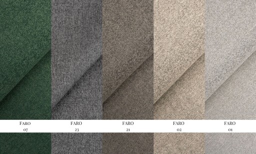 Faro to tapicerska tkanina, która posiada nowoczesny wygląd i jest przyjemna w dotyku. Jest odporna na liczne przetarcia dzięki włóknom poliestrowym.