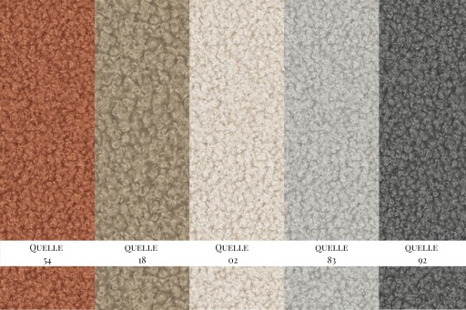 Quelle jest tkaniną obiciową, która wyróżnia się oryginalną strukturą w stylu boucle. Najczęściej tę strukturę określa się jako baranek; “bukla” to francuskie słowo, oznaczające skręcony lub pętelkę.