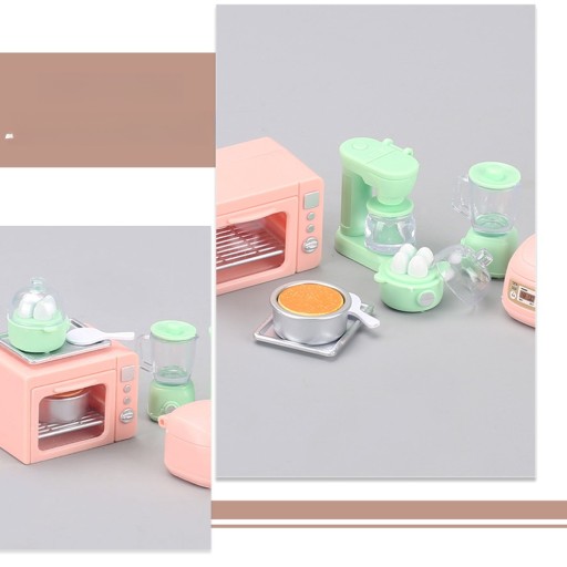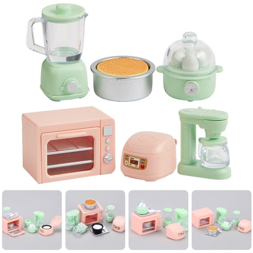 ✅1 x miniaturowy piekarnik 1 x miniaturowy parowar do jajek 1 x miniaturowa sokowirówka 1 x miniaturowy przetwarzacz żywności 1 x miniaturowa kuchenka elektryczna 1 x miniaturowa patelnia do ciasta