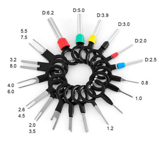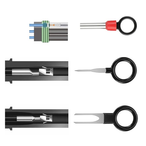 Ten zestaw narzędzi do demontażu zacisków elektrycznych zawiera 100 różnych typów narzędzi do demontażu i naprawy zacisków wtykowych w samochodach. Znajduje szerokie zastosowanie w demontażu większości zacisków wtykowych, zacisków wiązek przewodów i pinów zaciskowych (np. w samochodach, wiązkach przewodów i urządzeniach gospodarstwa domowego).