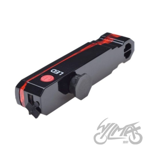Lampa rowerowa wodoodporna, wykonana z ABS, ładowana za pomocą USB. Wyposażona w baterie 500mAh (2h ładowania), oprócz głównego światła led posiada także dodatkowy laser.