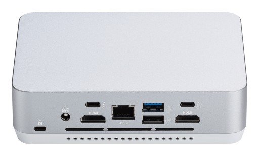 Ten mini PC oferuje szeroką gamę połączeń, w tym szybkie połączenie przewodowe Intel Ethernet z prędkością do 2,5 Gb/s i bezprzewodową technologię Intel Wi-Fi 6E dla stabilnego i szybkiego Internetu. Dzięki podwójnym portom HDMI i Thunderbolt 4 można łatwo podłączyć do czterech monitorów, co umożliwia elastyczne i wydajne środowisko pracy.