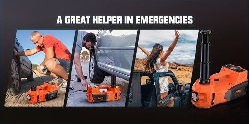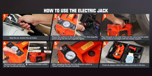 - Łączy podnośnik elektryczny z wbudowaną pompką do pompowania opon (max 150PSI, czas napompowania ≤1 minuta); nadaje się również do nadmuchiwania gumowych łodzi, pierścieni pływackich, rowerów, piłek do koszykówki itp.