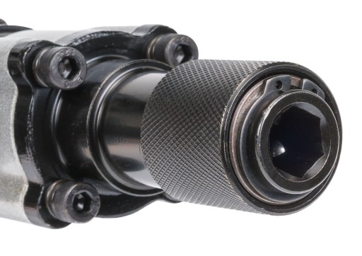 Krótki skok tłoka o dużej średnicy zapewnia silne uderzenie, minimalizując odrzut przenoszony na operatora.