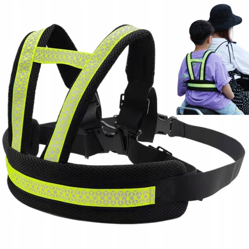 Dziecięcy pas bezpieczeństwa motocykla elektrycznego - fluorescencyjna konstrukcja odblaskowa, zapewniająca bezpieczeństwo jazdy