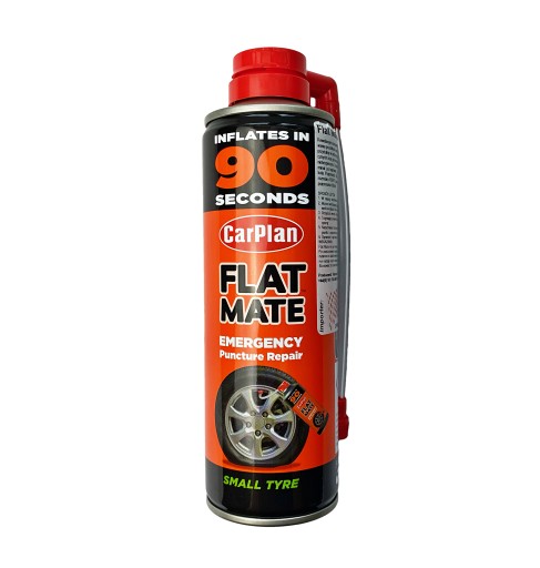 CarPlan FLAT MATE 300ml preparat do uszczelniania i pompowania przebitych opon. Szczególnie przydatny w niekorzystnych warunkach atmosferycznych oraz gdy wymiana koła jest niemożliwa lub niebezpieczna. Umożliwia dalszą jazdę w kilka minut po naprawie, bez konieczności wymiany koła.