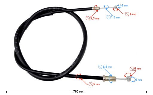 - długość całkowita linki: 760 mm