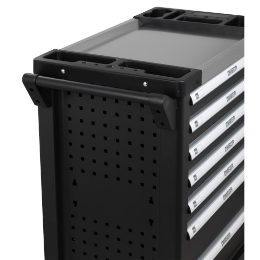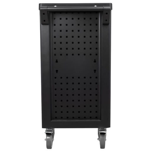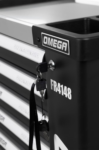 Ochrona narzędzi przed kradzieżą dzięki centralnemu zamkowi z dwoma kluczykami. Zabezpieczona zamkiem również boczna szafka na akcesoria.