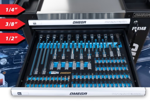 - Zestaw 13 szt nasadek długich 6-kątnych w rozmiarach: 8; 9; 10; 11; 12; 13; 14; 15; 16; 17; 18; 19; 22 mm