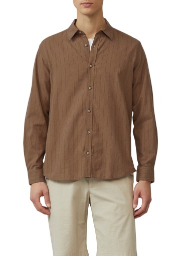 Klasyczna męska koszula marki s.Oliver, model Regular Fit, wykonana z wysokiej jakości mieszanki lnu (55%) oraz bawełny (45%). Prezentowany egzemplarz jest w rozmiarze XXL, w kolorze piaskowym (sandstein), z subtelnymi, poziomymi paskami. Koszula doskonale sprawdzi się zarówno w codziennych, jak i bardziej formalnych stylizacjach. Materiał koszuli cechuje się lekkością i przewiewnością, co zapewnia wysoki komfort noszenia nawet podczas cieplejszych dni. Strukturalna tkanina oraz regularny krój gwarantują odpowiednie dopasowanie do sylwetki bez ograniczania swobody ruchów. Model wyposażony jest w klasyczny fason z długim rękawem wykończonym mankietem oraz zapięciem na guziki na całej długości. Kentkragen (kołnierz typu kent) pozwala na uniwersalne stylizacje – zarówno z krawatem, jak i bez niego. Stylowe przeszycia oraz staranne wykonanie podkreślają wysoką jakość produktu.
