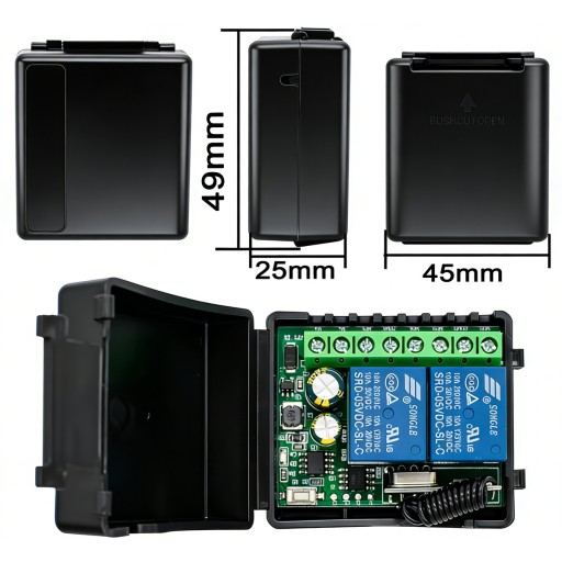 Ten odbiornik zawiera dwa przekaźniki, każdy z trzema zaciskami (normalnie otwarty, wspólny, normalnie zamknięty). Te dwa przekaźniki działają niezależnie, co pozwala na sterowanie każdym z nich oddzielnie poprzez naciśnięcie odpowiedniego przycisku na pilocie. Każdy odbiornik może zapisać około 20 nadajników. Jeden nadajnik może sterować wieloma odbiornikami (nadajnik musi być kompatybilny z odbiornikiem).