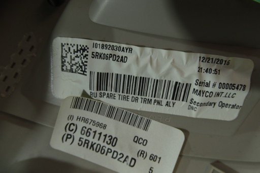 КРЫШКА ЛЕВОГО ЗАПАСНОГО КОЛЕСА СО СТОРОНЫ БАГАЖНИКА CHRYSLER PACIFICA 17-