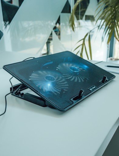 Nowoczesna podstawka BLOW pozwoli skutecznie schłodzić nasz laptop, dzięki czemu komputer będzie utrzymywał optymalną temperaturę podczas długotrwałej pracy. Dwa wydajne i ciche wentylatory o regulowanej prędkości zwiększają przepływ powietrza pod laptopem, nie pozwalając na jego przegrzanie, co zapewnia mu stabilną pracę i dłuższą żywotność.