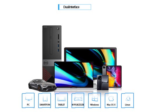 Obsługuje telefony komórkowe, tablety, komputery, samochodowy USB,