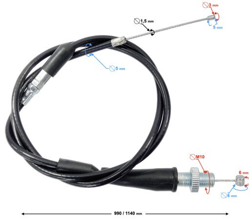 - długość pancerza linki: 990 mm