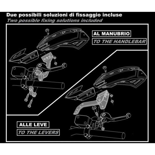 Nowe osłony dłoni / Handbary - Listki znanej włoskiej marki RACETECH. Osłony pasują na kierownicę standardową oraz na kierownicę fatbar. W zestawie dwa rodzaje mocowań. Mocowanie stosuje się miedzy dźwignią a manetką dzieki czemu handbary w żaden sposób nie przeszkadzają podczas jazdy lub drugie mocowanie przykręcane bezpośrednio do uchwytu dźwigni.