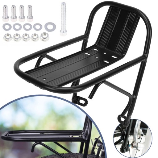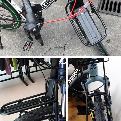 🚴🚴🚴【Łatwy montaż】Bagażnik na przednie koła nie wymaga zbyt wielu żmudnych kroków i części, do łatwego montażu potrzebne są tylko śruby i płytki żelazne.