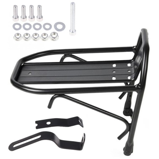 🚴🚴🚴【Materiał wysokiej jakości】Przedni bagażnik rowerowy wykonany jest z wysokiej jakości stopu aluminium z czarną powłoką, który jest mocny, trwały i wytrzymały.