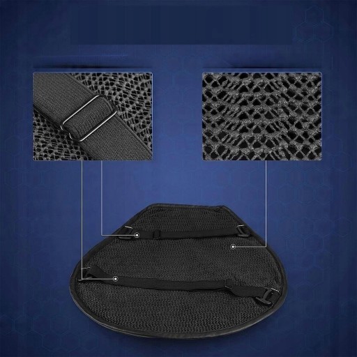 Wnętrze poduszki do siedzenia motocyklowego zostało zaprojektowane z strukturą plastra miodu 3D, która może rozpowszechniać dużo powietrza i umożliwia chłodne wrażenia podczas podróży; Rowek pośrodku zwiększa aktywność oddychania, która może utrzymać suchy, oddychający i nie lepki. Zapewnia dodatkowy komfort na chłodniejszą podróż.