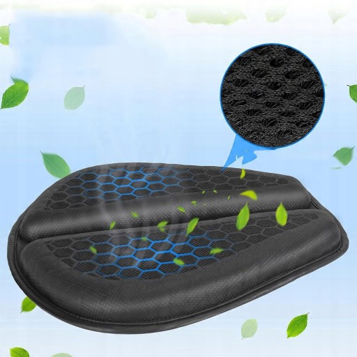 Wnętrze poduszki do siedzenia motocyklowego zostało zaprojektowane z strukturą plastra miodu 3D, która może rozpowszechniać dużo powietrza i umożliwia chłodne wrażenia podczas podróży; Rowek pośrodku zwiększa aktywność oddychania, która może utrzymać suchy, oddychający i nie lepki. Zapewnia dodatkowy komfort na chłodniejszą podróż.
