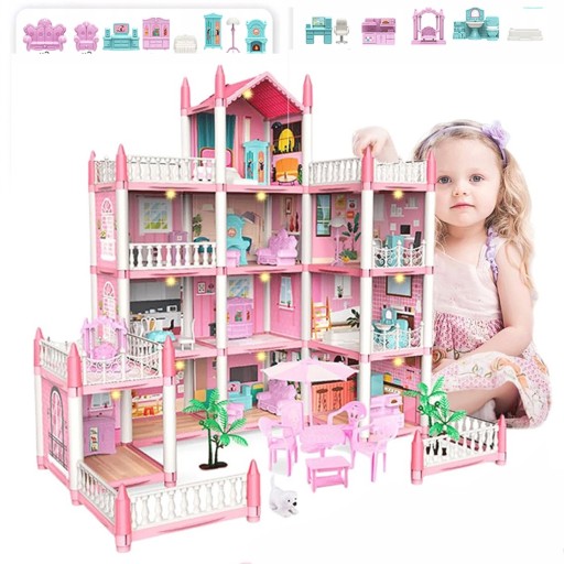 Piękna Różowa Willa dla Dziewczynek - Zestaw Kreatywny 4 Poziomy 11 Pomieszczeń