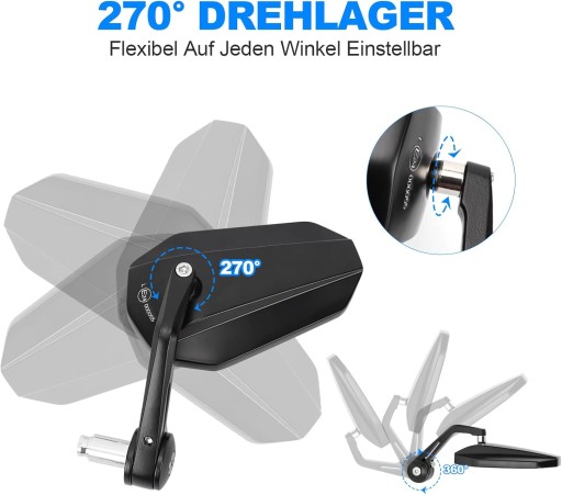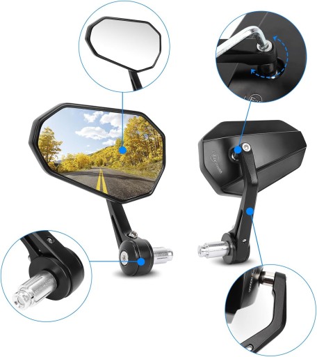 Lusterka motocyklowe z aluminiowej obudowy oferują doskonałą widoczność i bezpieczeństwo podczas jazdy. Dzięki regulowanemu kątowi 360° można łatwo dostosować najlepszy widok, co pozwala na komfortową i bezpieczną jazdę.
