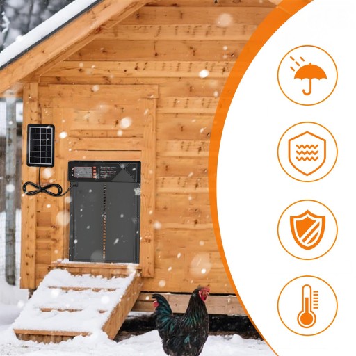 - Otwór wejściowy 28×24 cm jest odpowiedni dla wszystkich rodzajów drobiu (kury, kaczki, gęsi)